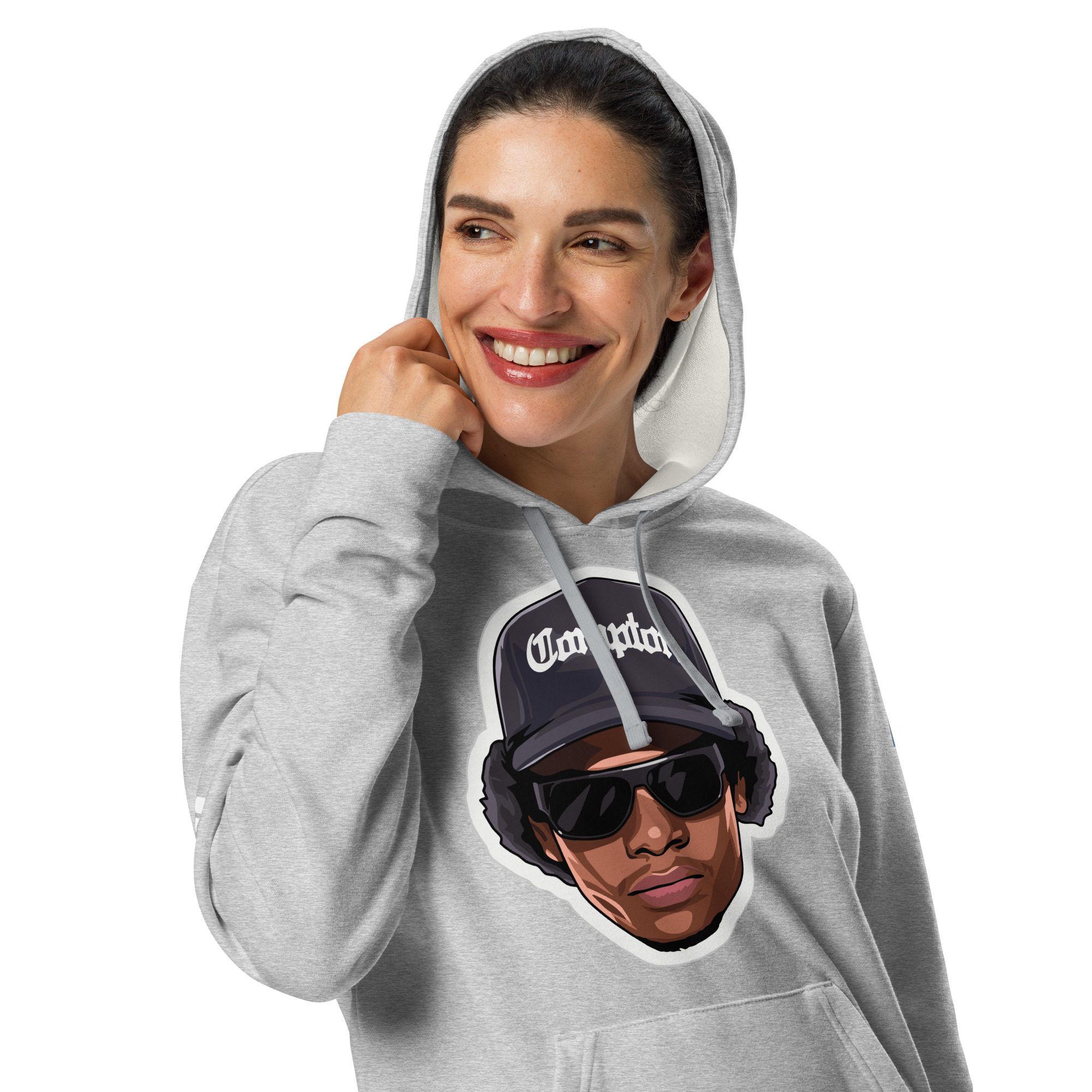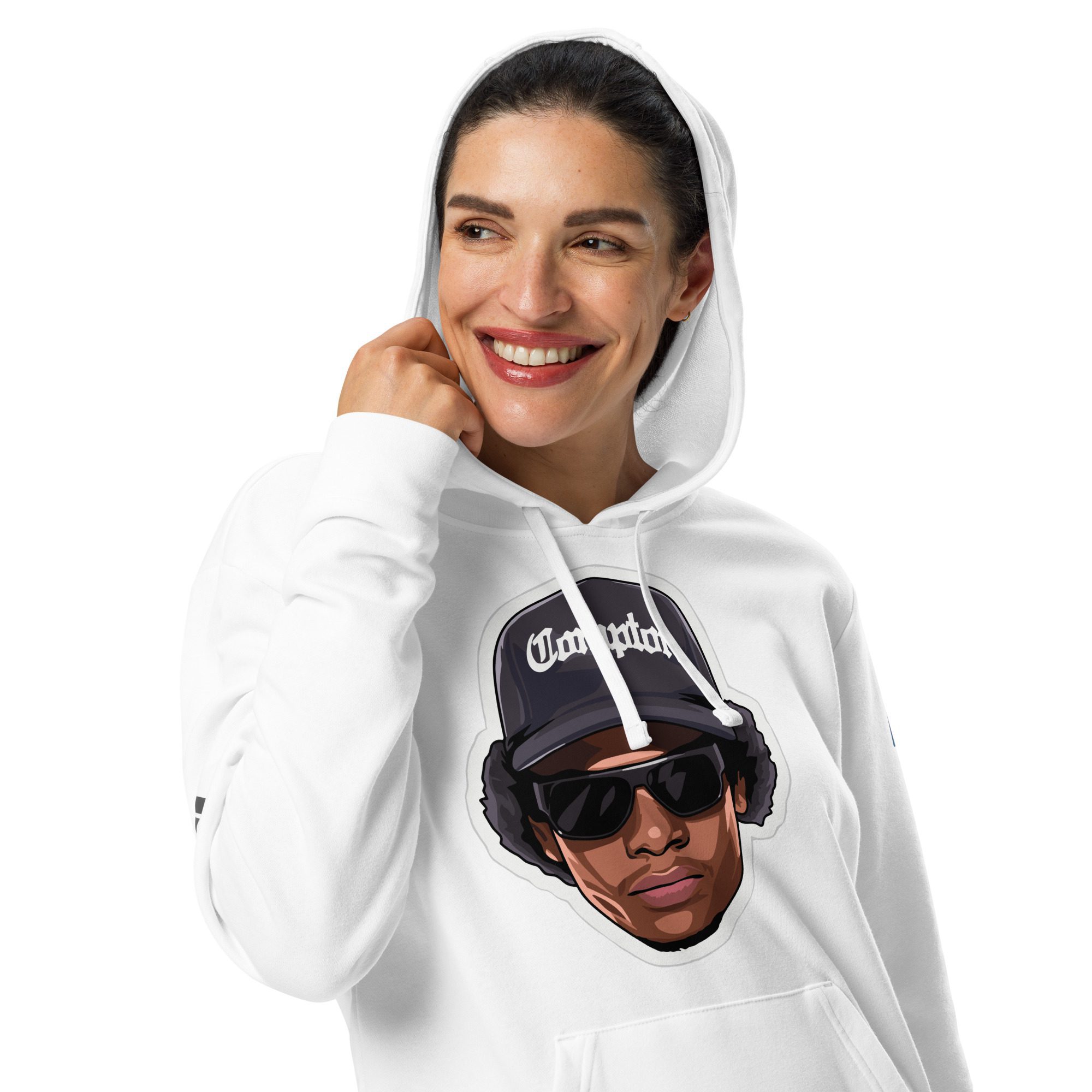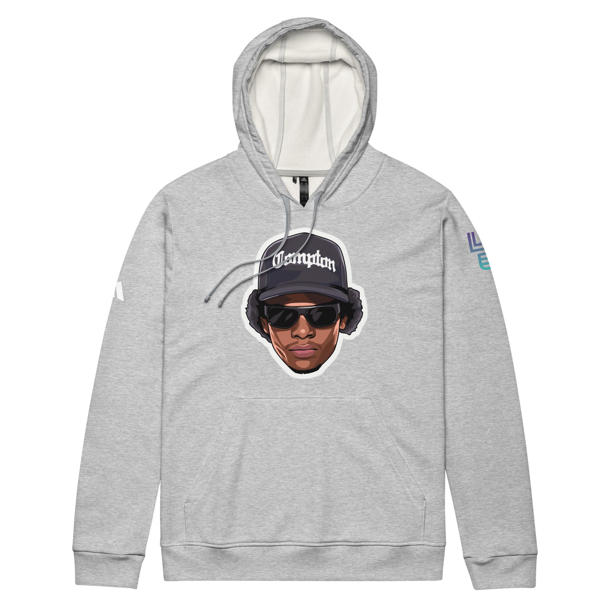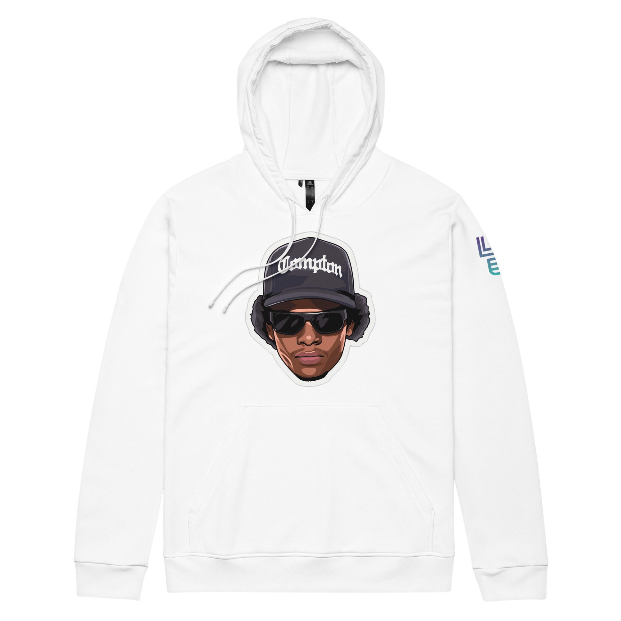 Step into iconic streetwear with the Eazy-E Adidas Pull-Over Hoodie by LEDA. Featuring an eye-catching graphic of the legendary rapper in his signature “Compton” cap and cool shades, this white fleece hoodie pays tribute to the essence of hip-hop culture. The bold design brings a modern twist to the timeless style of one of the most influential figures in the music world. Whether you’re a fan of West Coast rap or simply looking to add a statement piece to your wardrobe, this hoodie embodies Eazy-E’s raw charisma and legacy. Stay warm, stay stylish, and show your love for the OG of gangsta rap! Only 100 available.