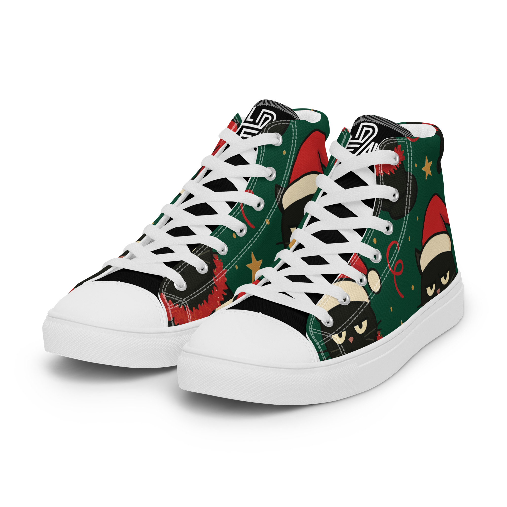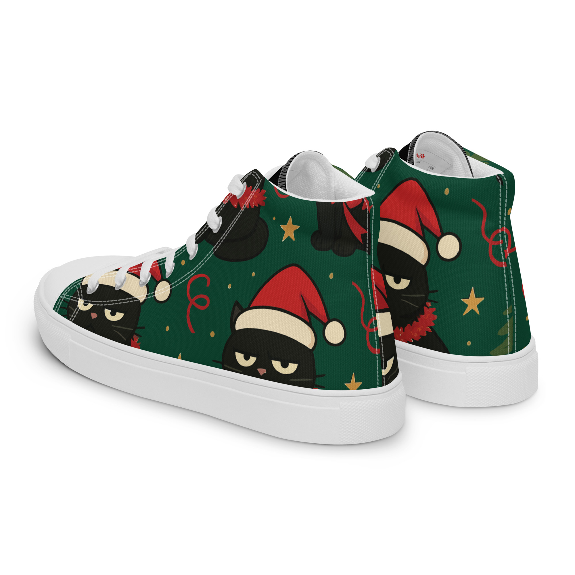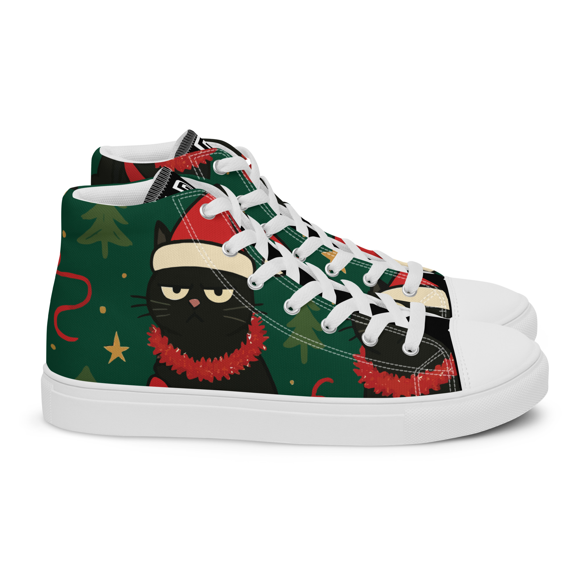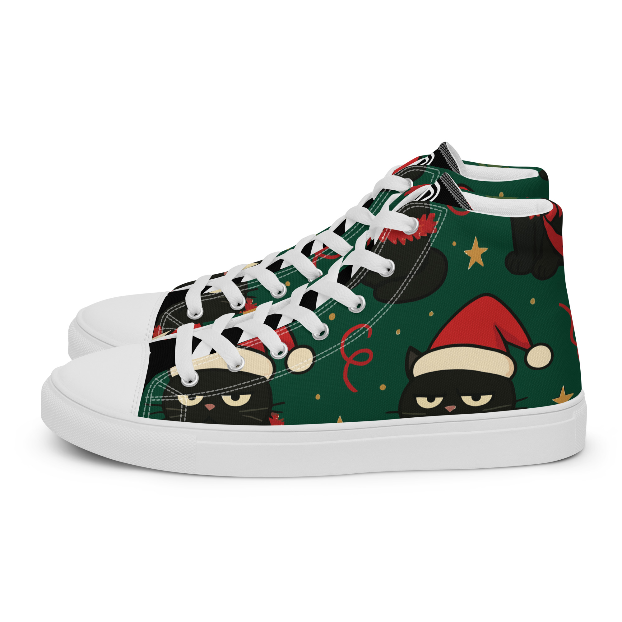 Add a bold holiday statement to your wardrobe with these Men’s High Top Canvas Shoes featuring a distinctly unimpressed black cat dressed in full festive gear. The design blends humor, personality, and seasonal style, making these shoes a standout choice for winter outings, gatherings, or relaxed weekends.