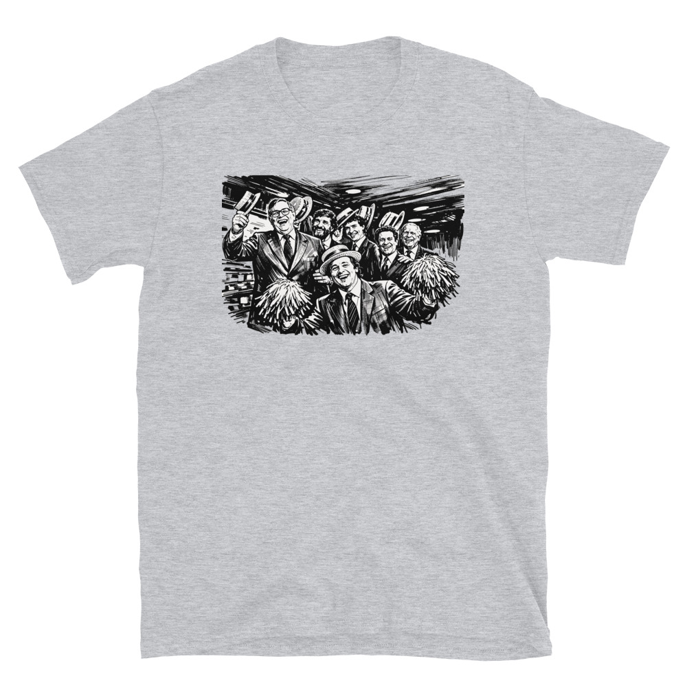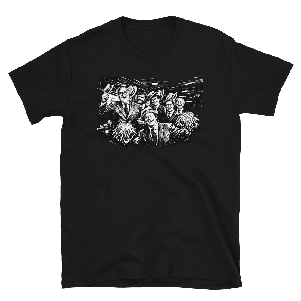The staff of Walter Beauchamp Tailors, ca. 1983. From left, Walter Jr., Tim Heflin, Terry Beauchamp (in front), Bruce Beauchamp, Alfonso Prezioso and Gordon Ruben. (Collection of Bob Kane)